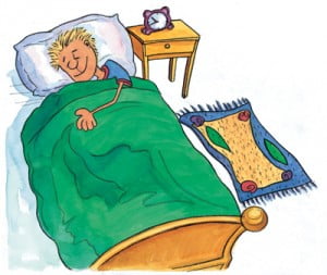 Evenings Nigel was afraid to go to sleep. One evening when mother had already given him a good night kiss and told him good night, he said, ‘I am not going to sleep at all. I will stay awake all night. That way I won’t have that awful nightmare.’