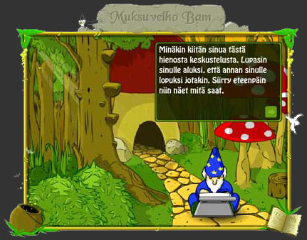 Olet auttanut lasta keskustelemaan kanssani, ymmärtämään kysymykseni ja vastaamaan niihin. Siksi pyydän lasta kiittämään sinua avustasi. Sitten minä puolestani kiitän lasta ja ryhdyn kirjoittamaan hänelle niitä papereita, jotka hän saa keskustelun lopuksi minulta. Klikkaa nappia niin näette mitä olen saanut aikaiseksi. |
